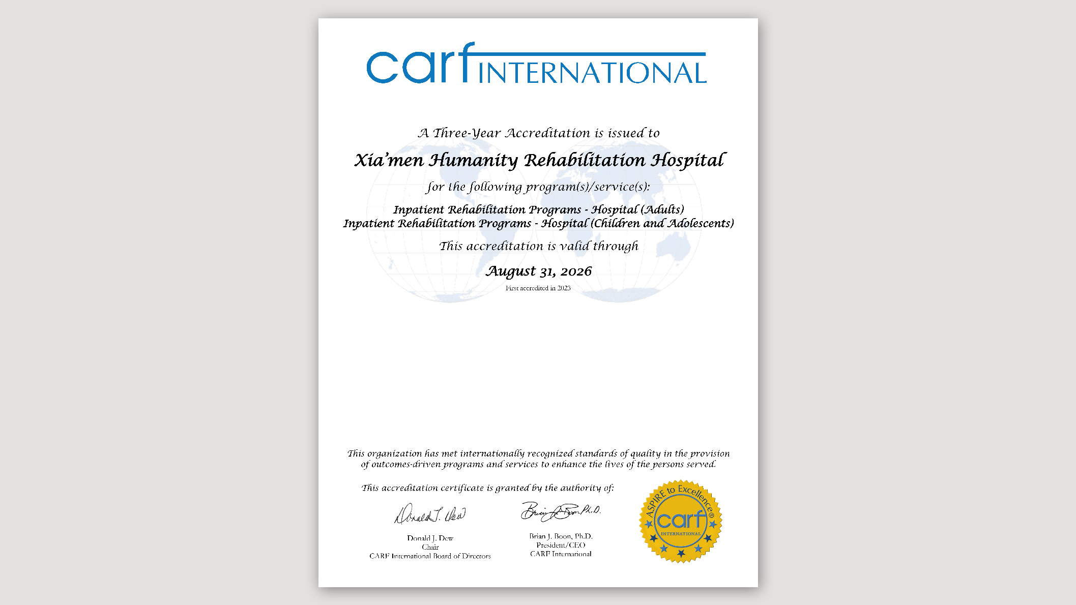 厦门弘爱康复医院获得CARF综合住院项目三年期国际康复认证