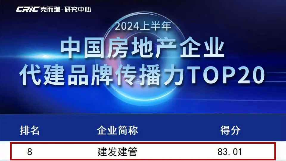 建发建管上榜克而瑞房地产企业代建两大榜单