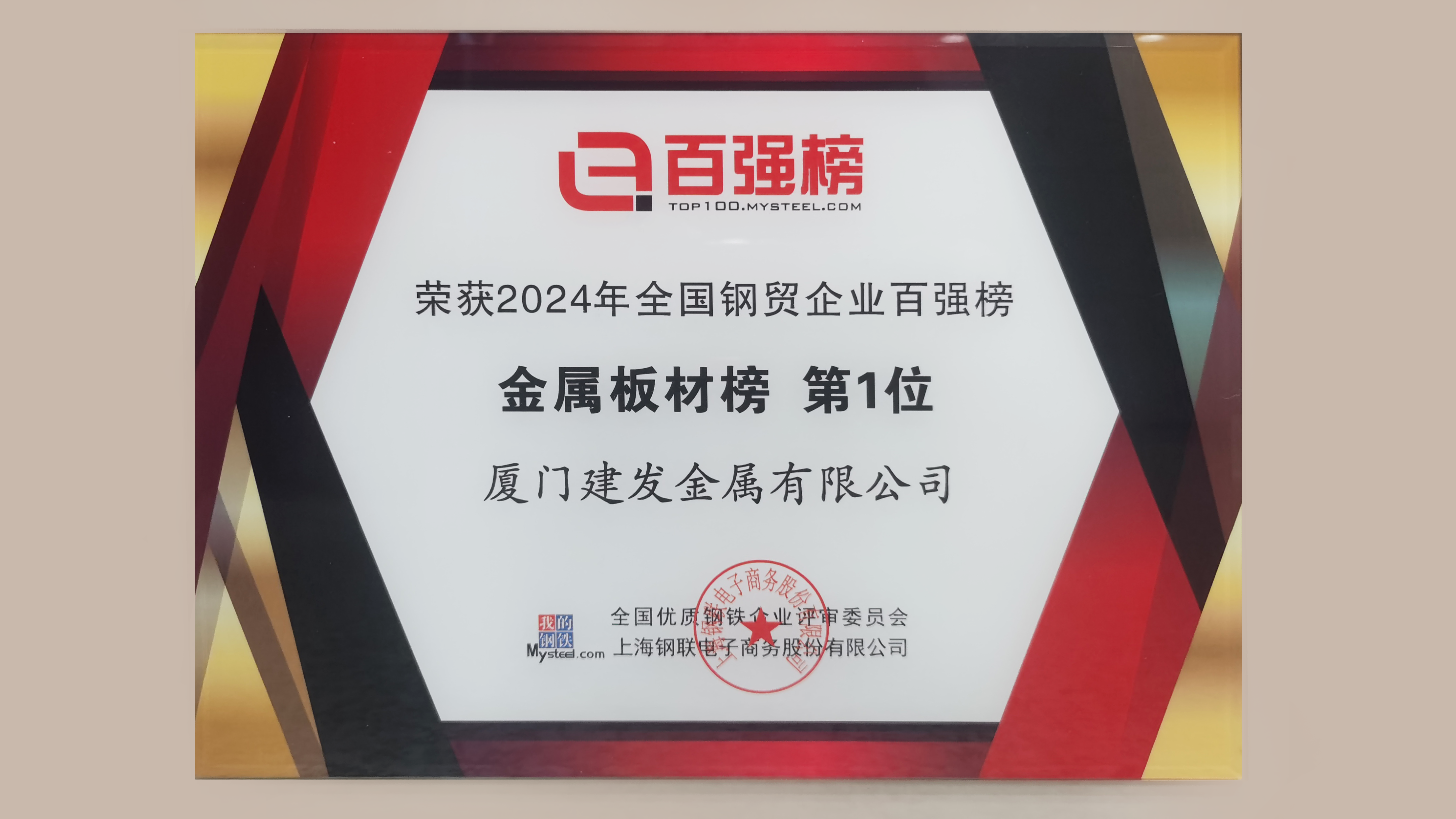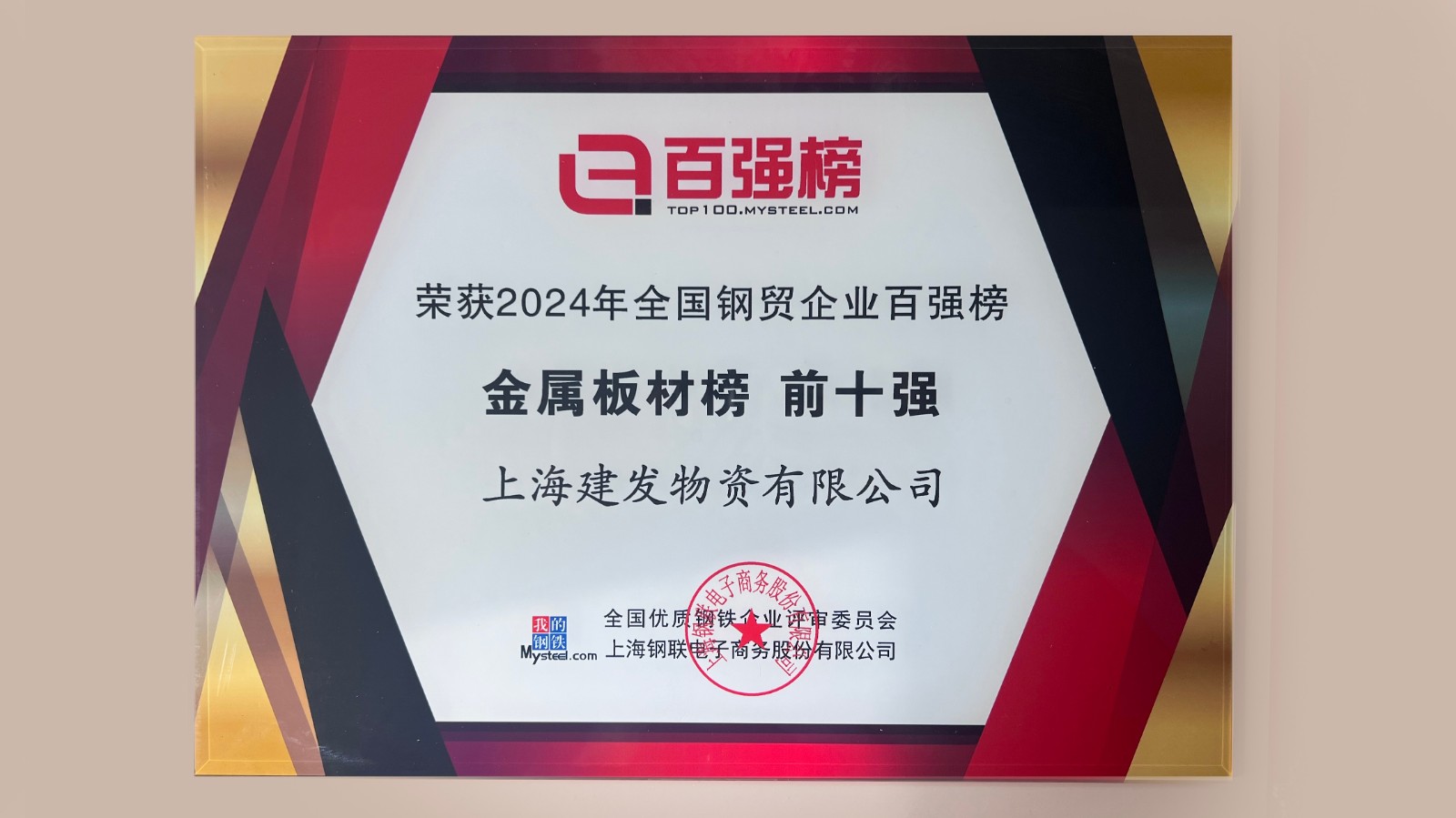 近日,在“2025中国大宗商品颁奖庆典”上,建发股份(600153.SH)钢铁集团获2024年全国钢贸企业百强榜“综合榜第一位”,钢铁集团旗下建发金属、上海建发物资分获“金属板材榜第一位”及“金属板材榜前十强”。