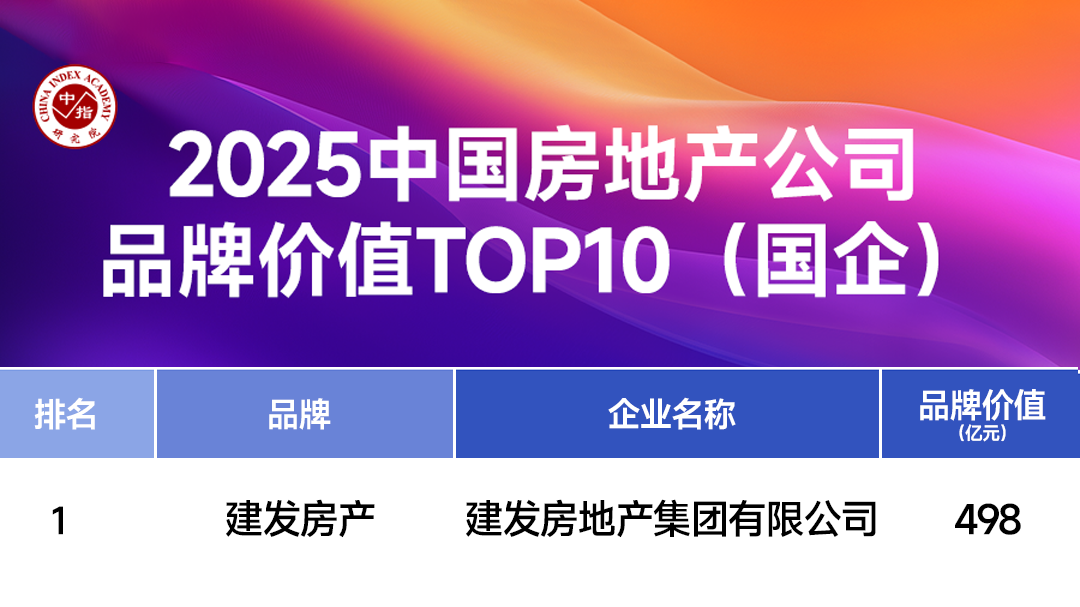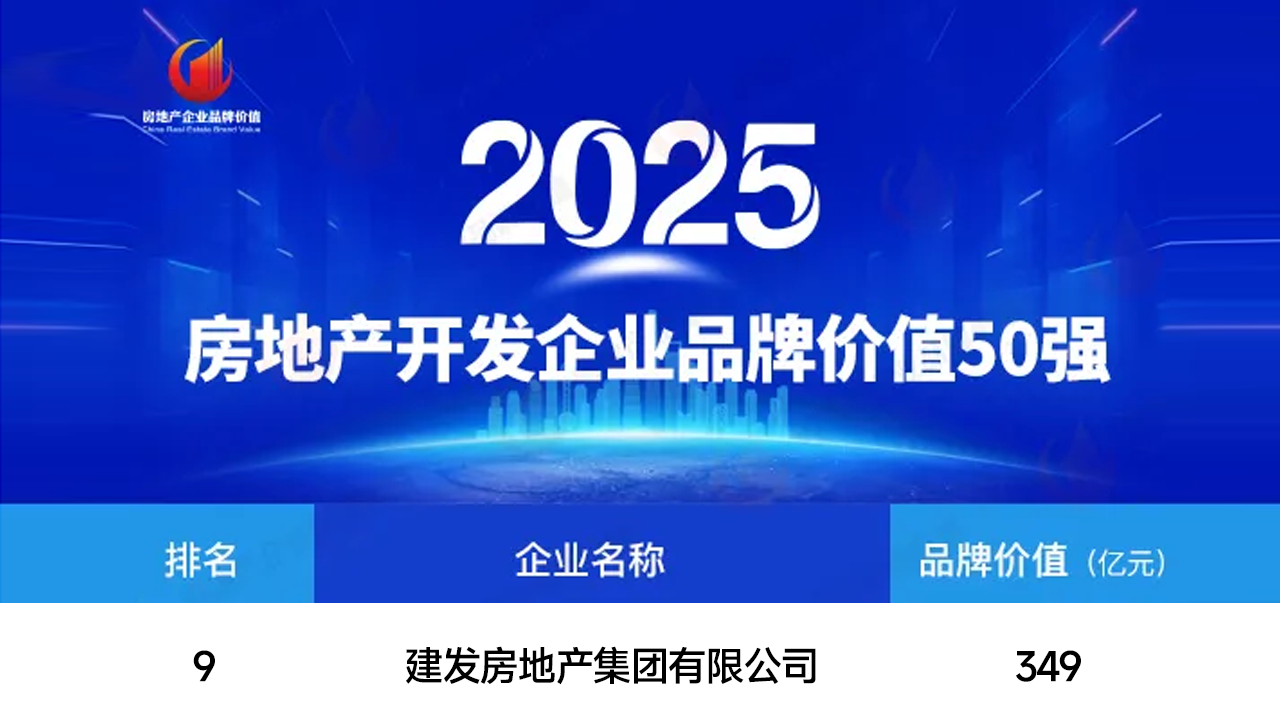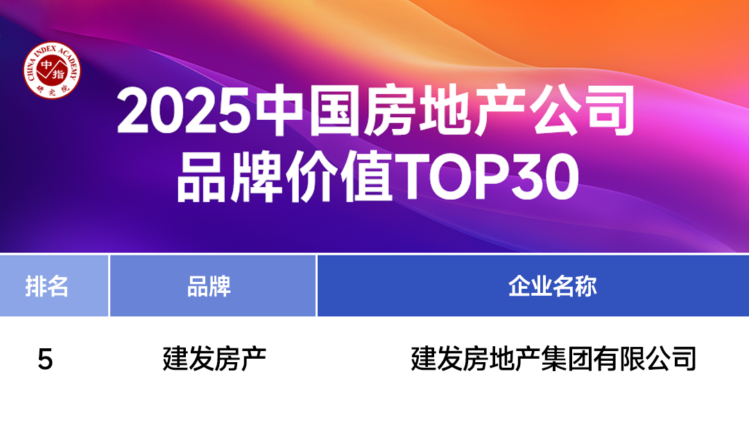 在中国房地产业协会指导、上海易居房地产研究院和克而瑞集团联合开展的房地产企业品牌价值测评成果中,建发房产获评“2025房地产开发企业品牌价值TOP9”“2025房地产开发企业品牌价值成长性TOP4”。
